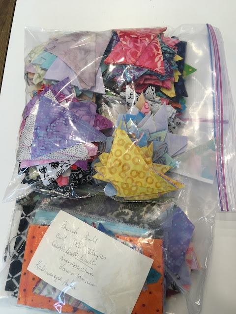 Over the weekend I realized I need to make a baby quilt and two graduation quilts and it getting toward the end of March. Panic. Start with the easy one, a tummy time quilt with bright colors and black and white because babies like to look at bright colors and black and white designs. I cut a few too many pieces….why cut 4 triangles from the fabric when I can cut a 3 1/2 inch strip and have a dozen or so triangles……..put the leftovers in a bag of quilt seeds for the next tummy time quilt. Next to sew all the small corner triangles. Might snow again a great day to sew. Ann